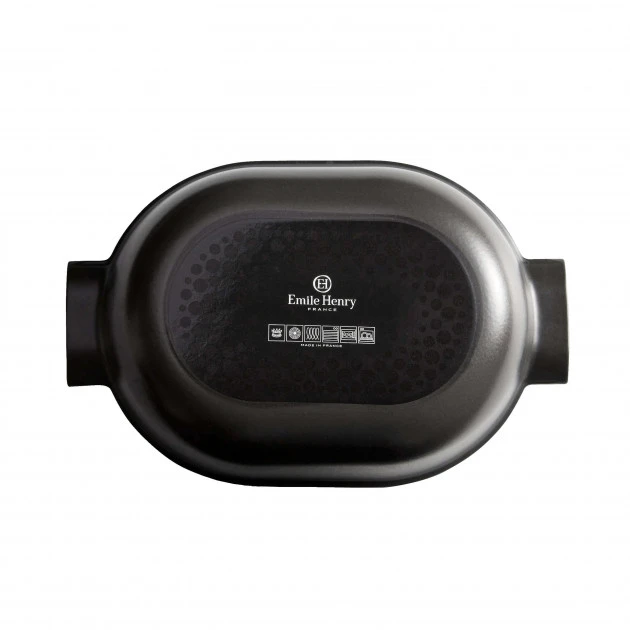 Vous pourrez facilement préparer des repas pour 4 à 6 personnes au sein de cette cocotte Emile Henry qui servira sans mal de plat de présentation. Son émail d’un noir profond est d’une grande élégance, la lumière se reflétant sur les lignes arrondies de son design.