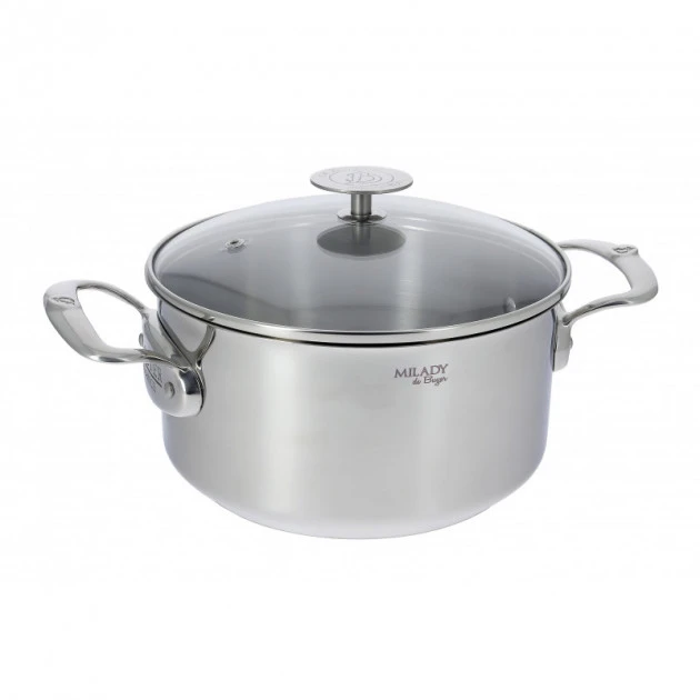 - 1 couvercle en verre cerclé inox : compatible avec tous les ustensiles de la collection MILADY