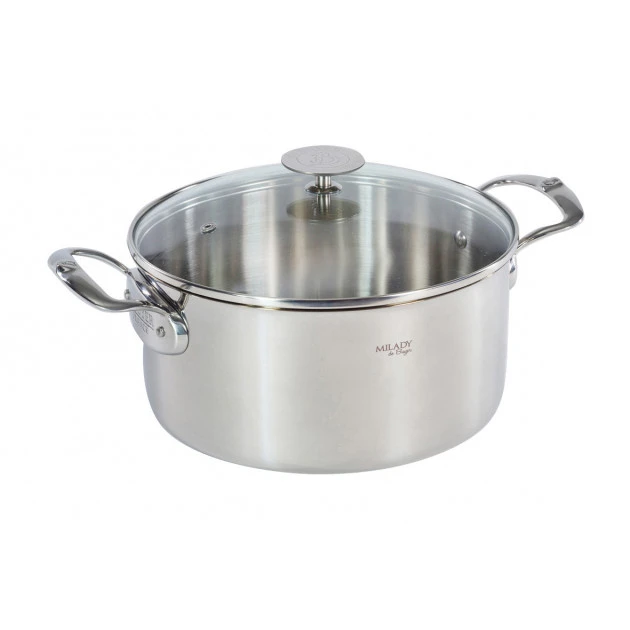 - 1 couvercle en verre cerclé inox : compatible avec tous les ustensiles de la collection MILADY