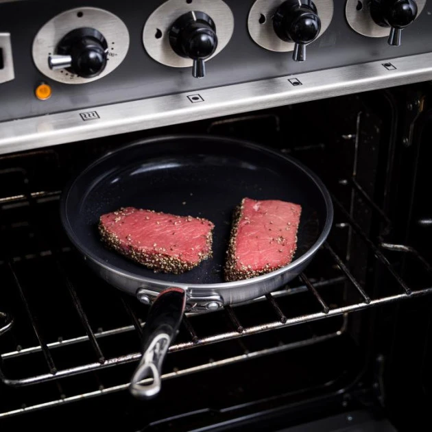 L’acier inoxydable 3 plis de cette poêle antiadhésive offre une qualité professionnelle et assure une cuisson homogène. Sa jante protège le revêtement contre les chocs et l’écaillage. Vous pourrez poser spatules et cuillères sans craindre d’abîmer votre poêle.