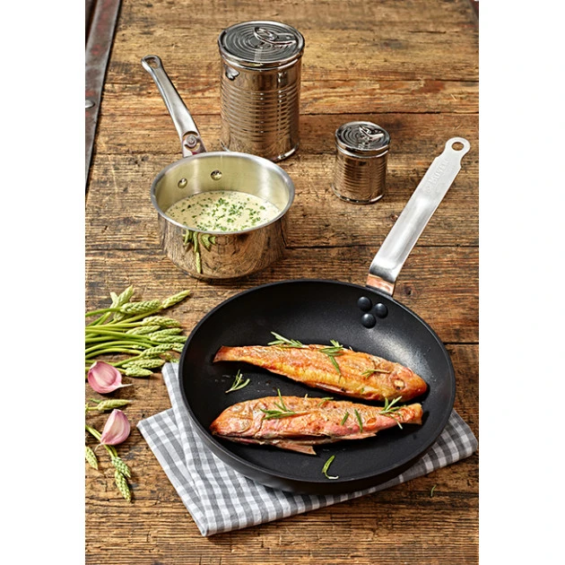 Pour faire réchauffer vos plats, ou lier une sauce : la Poêle Anti Adhésive De Buyer est idéale. En plus d’offrir une montée progressive et uniforme de la température, cette Poêle Ronde est indéformable. En effet, celle-ci est issue de la gamme Choc Intense De Buyer et est fabriquée en aluminium forgé.