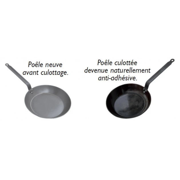 – Poêle naturellement anti-adhésive après culottage. Sans revêtement chimique, pas de PFOA ni PTFE.