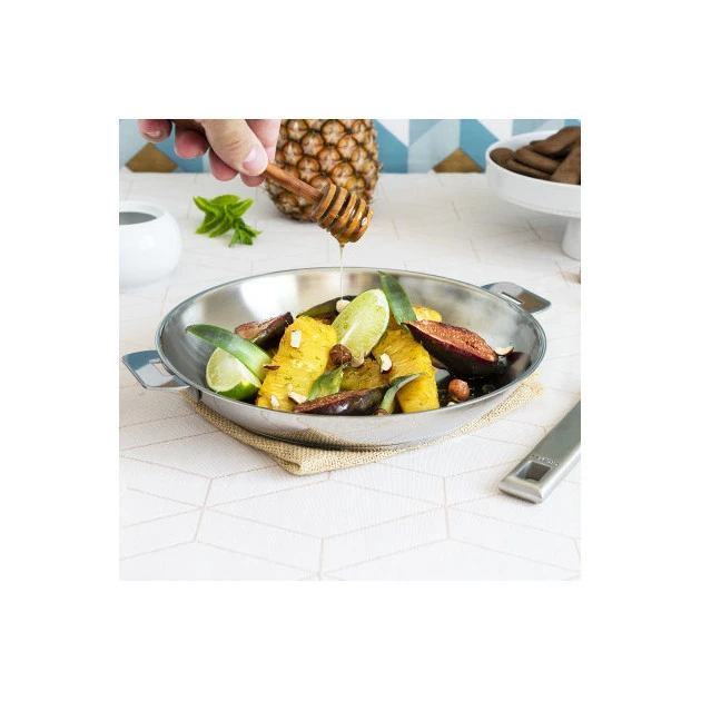 La poêle en inox est un ustensile robuste qui vous accompagnera longtemps, ses bords hauts vous permettent de réaliser de délicieuses sauces à partir du jus de vos viandes.